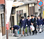 五条駅から学園までの道を高校生のボランティアが掃除する、清掃ボランティアが行われました。