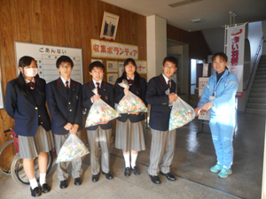 その他 ペットボトルキャップを提出してきました 2016年12月19日 12月17日(土)15時ごろ生徒会執行部が、11月から集めてきたペットボトルキャップを五條市社会福祉協議会へ提出しに行ってきました。回収されたペットボトルキャップは換金され、途上国の医療・教育支援に利用されます。これからも回収運動を続けますので、ご協力よろしくお願いします。 ...