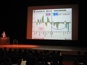 その他 【高校2年】進路講演会開催 2016年12月7日 12月6日(火)第4限に、駿台予備学校の大草敏弘様をお招きし、高校2年生対象の進路講演会を開催しました。講演では、大学入試の現状、各大学の入試傾向、大学進学におけるこの時期の重要性や第1志望に合格するための心構えなどの話があり、生徒たちにとってとても有意義な時間でした。また、実際の入試問題の再現答案を見せていただいたと...