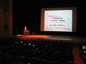 12月6日(火)第4限に、駿台予備学校の大草敏弘様をお招きし、高校2年生対象の進路講演会を開催しました。講演では、大学入試の現状、各大学の入試傾向、大学進学におけるこの時期の重要性や第1志望に合格するための心構えなどの話があり、生徒たちにとってとても有意義な時間でした。また、実際の入試問題の再現答案を見せていただいたときは、受験生の合格への執念が伝わってきました。受験まであと1年となった生徒たちには、この講演の内容から自分を向上させるヒントをつかみ、第一志望校合格につなげてほしいと思います。