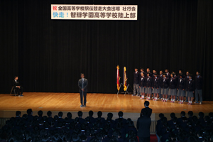 12月14日(水)に、全国大会に出場する陸上部の選手の壮行会が学園講堂で開かれました。