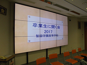 本校を卒業した大学生を招いて、後輩である高校生に対して経験などを伝えてもらうという催しです。