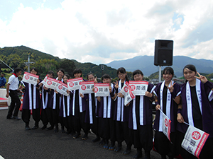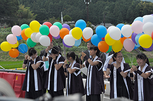8月19日(土) 京奈和自動車道 大和御所道路 御所南IC~五条北IC開通式典に本校の和太鼓部が出演いたしました。今回は中2・中3と高1・高2までの部員計11名で「輝響(ききょう)」を演奏しました。また演奏の後、部長はくす玉開きに、他の部員たちはバルーンリリースに参加させていただき、みなさまと共に開通をお祝いしました。式典に来ていただいた方々、式典関係者の方々に喜んでいただけて 、部員一同うれしく思っております。ありがとうございました。