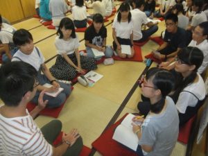 座談会では、東大に通う五條校・和歌山・カレッジの卒業生(8名)が参加し、中学時代や高校時代の体験や大学での学問・生活について、様々な角度から話をしてくれました。熱心に先輩たちの話を聞く生徒たちの姿が印象的でした。