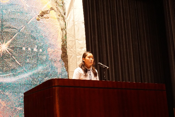 ⑥英語スピーチ 中3A 奥野愛華さん “Every experience leads me to a better future.” |
