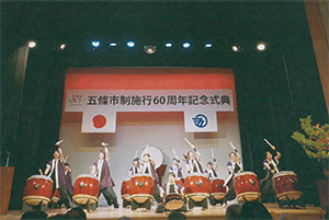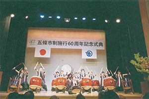 10月15日(日)、五條市市民会館で行われた「五條市制施行60周年記念式典」に和太鼓部と生徒会長の森田大智君が参加しました。