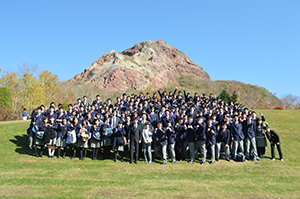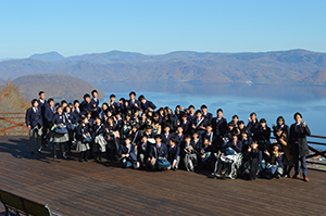 10月26日~29日まで、高校2年生は北海道修学旅行に行きました。 1日目 飛行機で関西国際空港から新千歳空港に到着し、白老町のアイヌ民族博物館・ポロトコタン(大きな湖の集落)に行きました。民族舞踊に参加させてもらったり、大きな湖をバックに写真を撮りました。