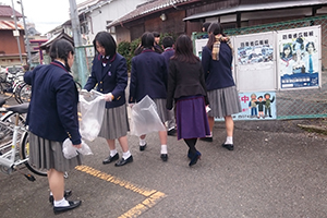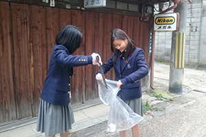 学園の最寄り駅であるJR五条駅までの道と、駅周辺のごみを集めて回りました。