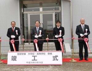 2月28日(水)に、平成29年6月より改築を進めていました寮棟の竣工式がおこなわれました。工事関係者、学園関係者、現寮生等が出席し、新しい寮棟の完成を祝いました。昭和42年以来、多くの寮生が生活してきた旧寮のこれまでに思いを馳せつつ、3月中には引っ越しを行い、新寮で生活を始めます。工事に関わって頂いた全ての方々に感謝申し上げます。