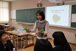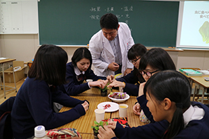 3月3日(土)本校に龍谷大学農学部の古本強先生、塩尻かおり先生、玉井鉄宗先生をお招きして農学部サイエンスカフェを開催しました。「植物の五感 ~彼らはけっこう気づいている~」と題し、教科書には載っていないような、植物の五感について、とても興味深い話をしていただきました。