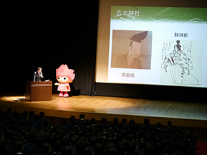 3月5日(月)の5時間目に講堂において、吉野山ウォーキングの事前指導が行われました。体育科の先生からは、当日の注意事項などが、社会科の先生からは、吉野山の歴史や魅力、世界遺産などについてスライドも使い、わかりやすく熱のこもった説明がありました。