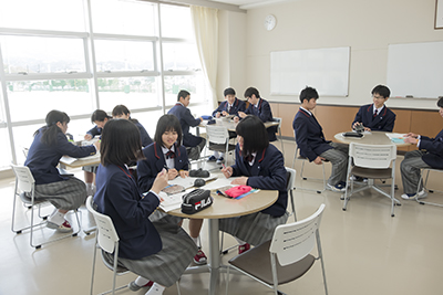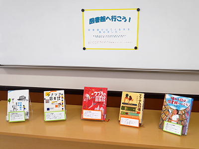生徒たちにもっと図書館を利用してもらいたいと、スチューデント・コモンズ(2階)の一角に、図書館コーナーを設けました。