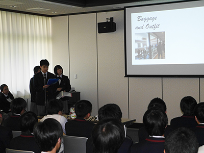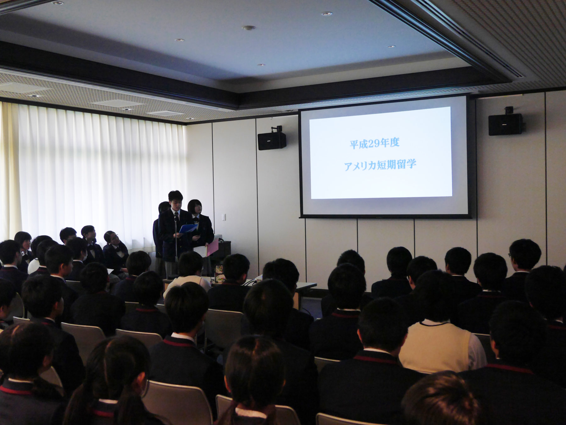 3月にアメリカ留学を経験した生徒たちが、英語と日本語を交えて、中学3年生に対し約1時間のプレゼンテーションと質疑応答を行いました。
