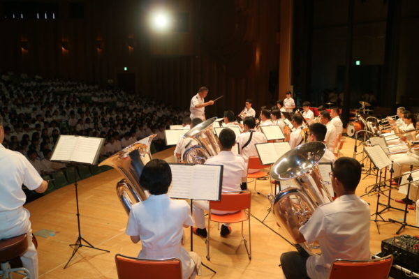 会場、そして自衛隊の方からも、吹奏楽部の生徒たちに拍手が‼