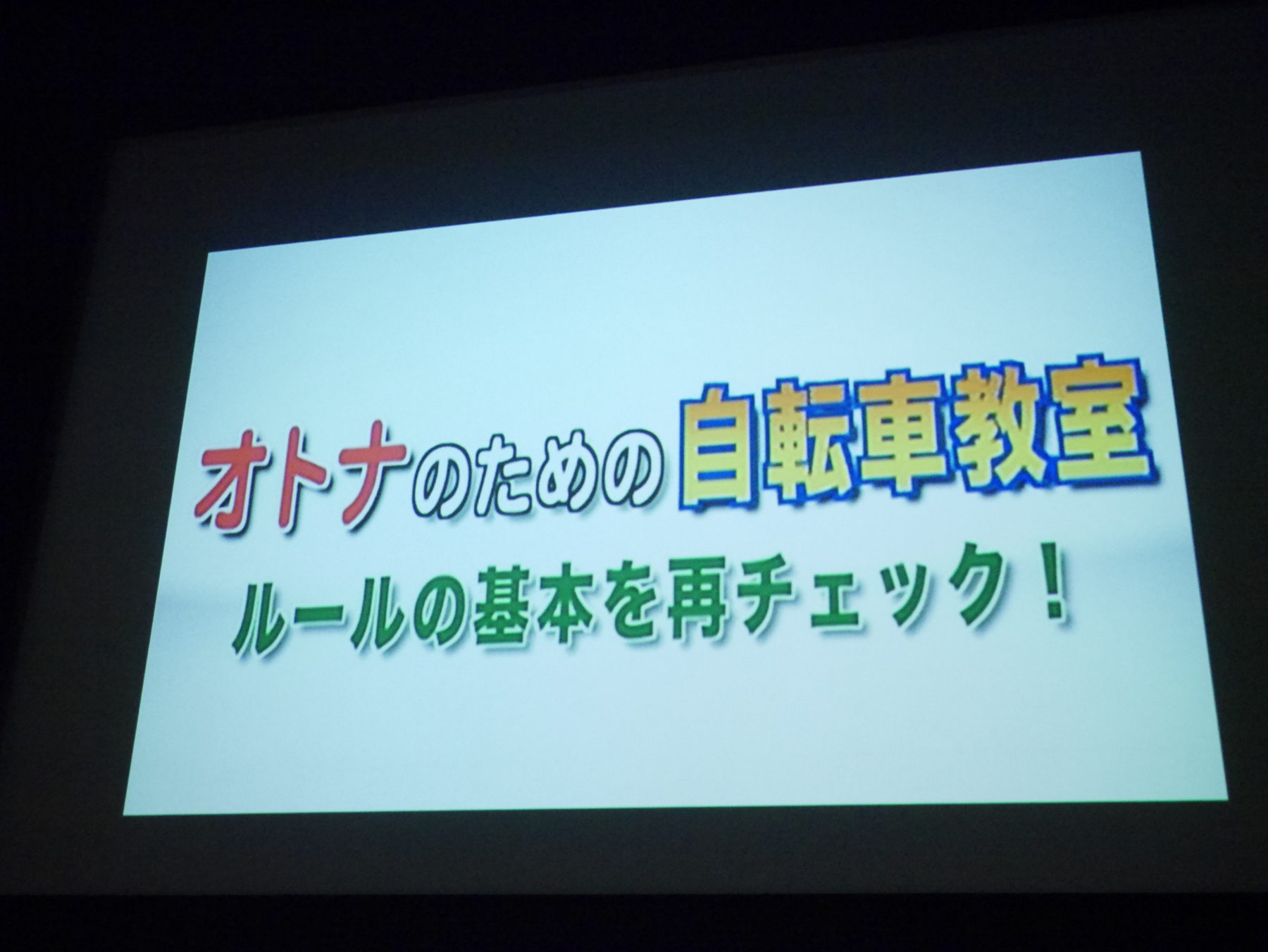 次に交通課の花坂様より、自転車に乗る時の基本的なルールについて、映像とお話で、分かり易く教えていただきました。