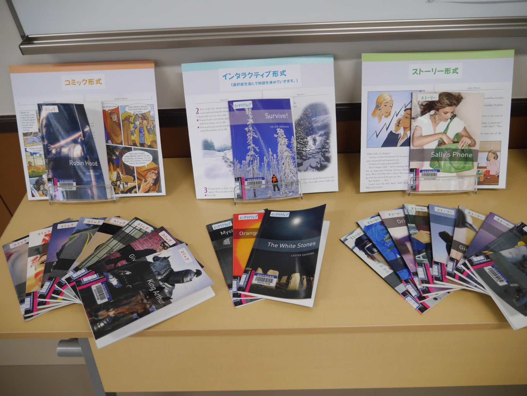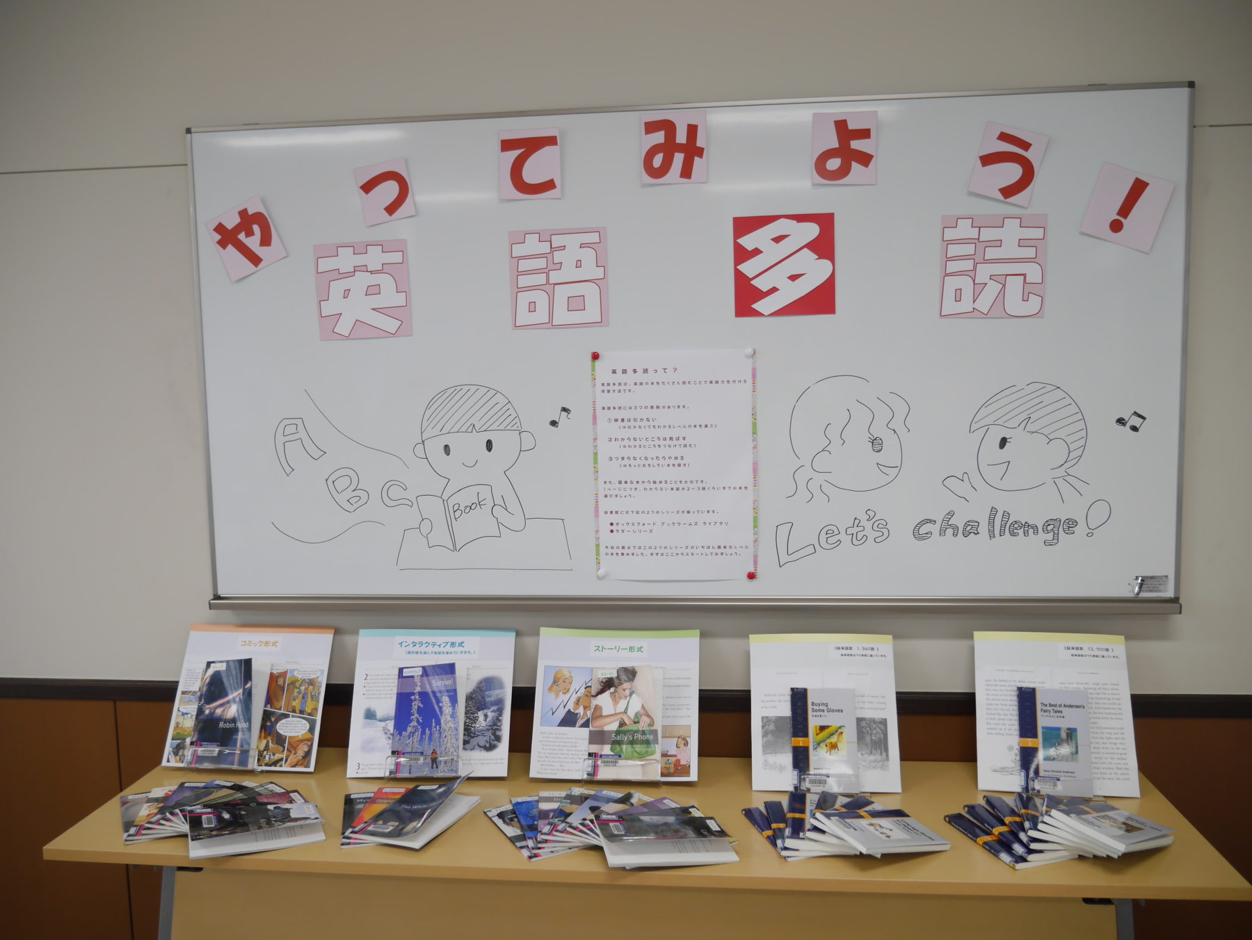 スチューデントコモンズ(2階)に、「やってみよう! 英語多読」コーナーを開いています。