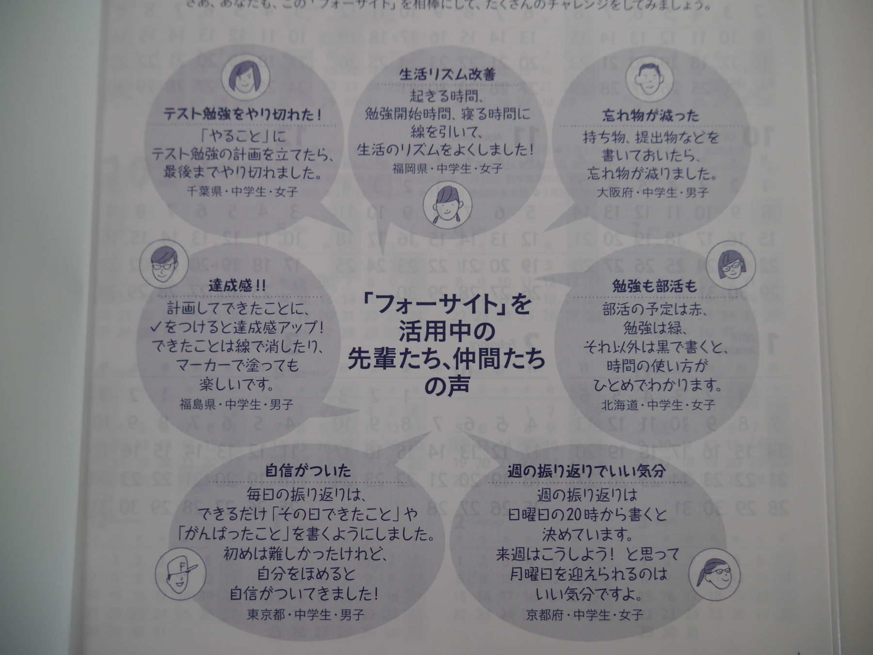 『フォーサイト手帳』とは、中学1年生が毎日記録し、学校生活の充実と向上のために活用している手帳です。