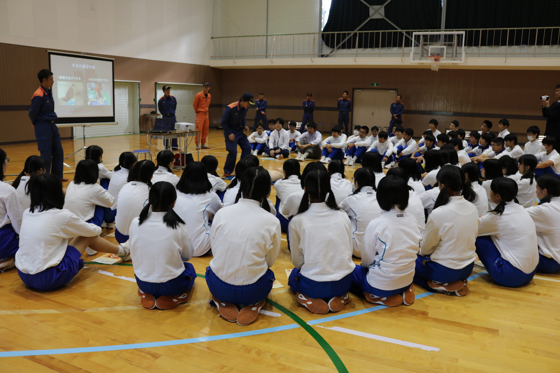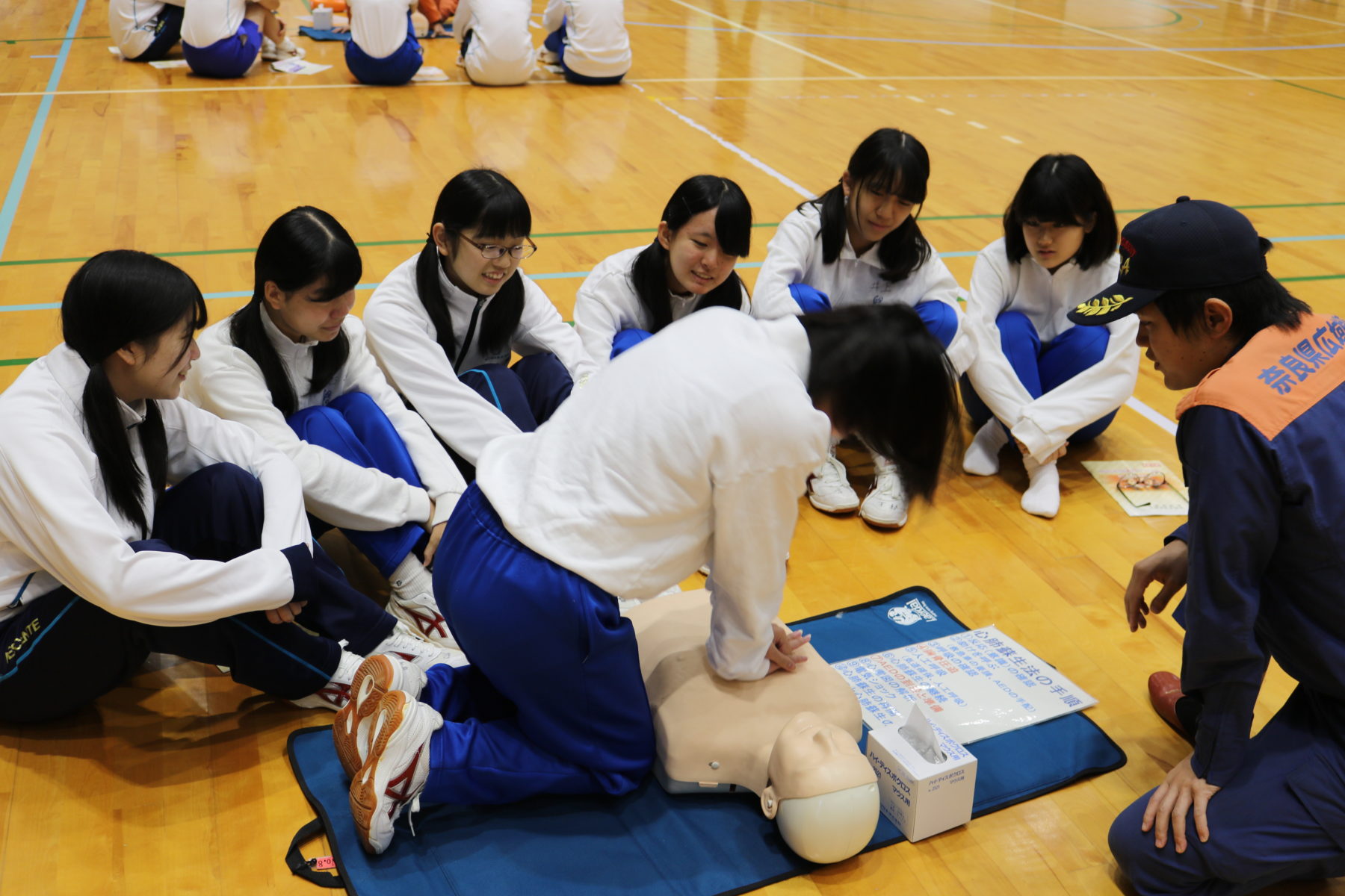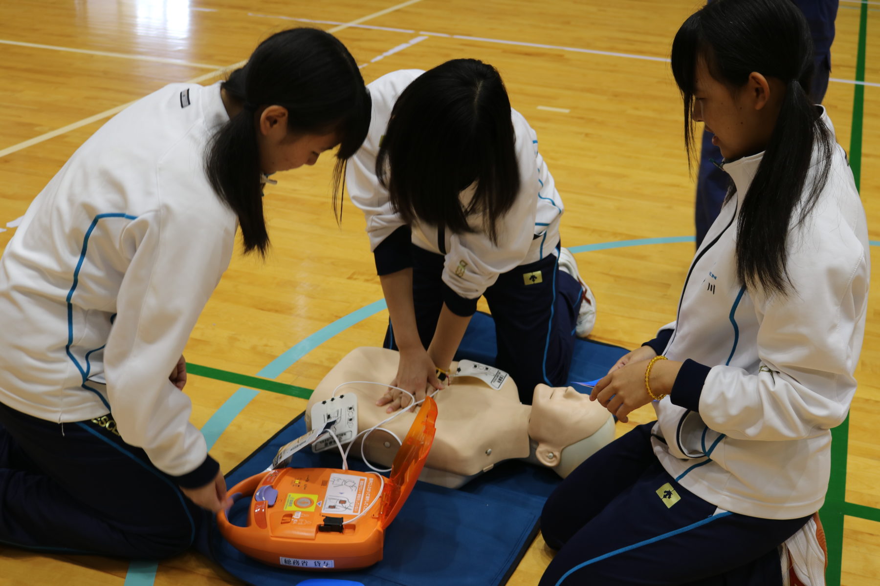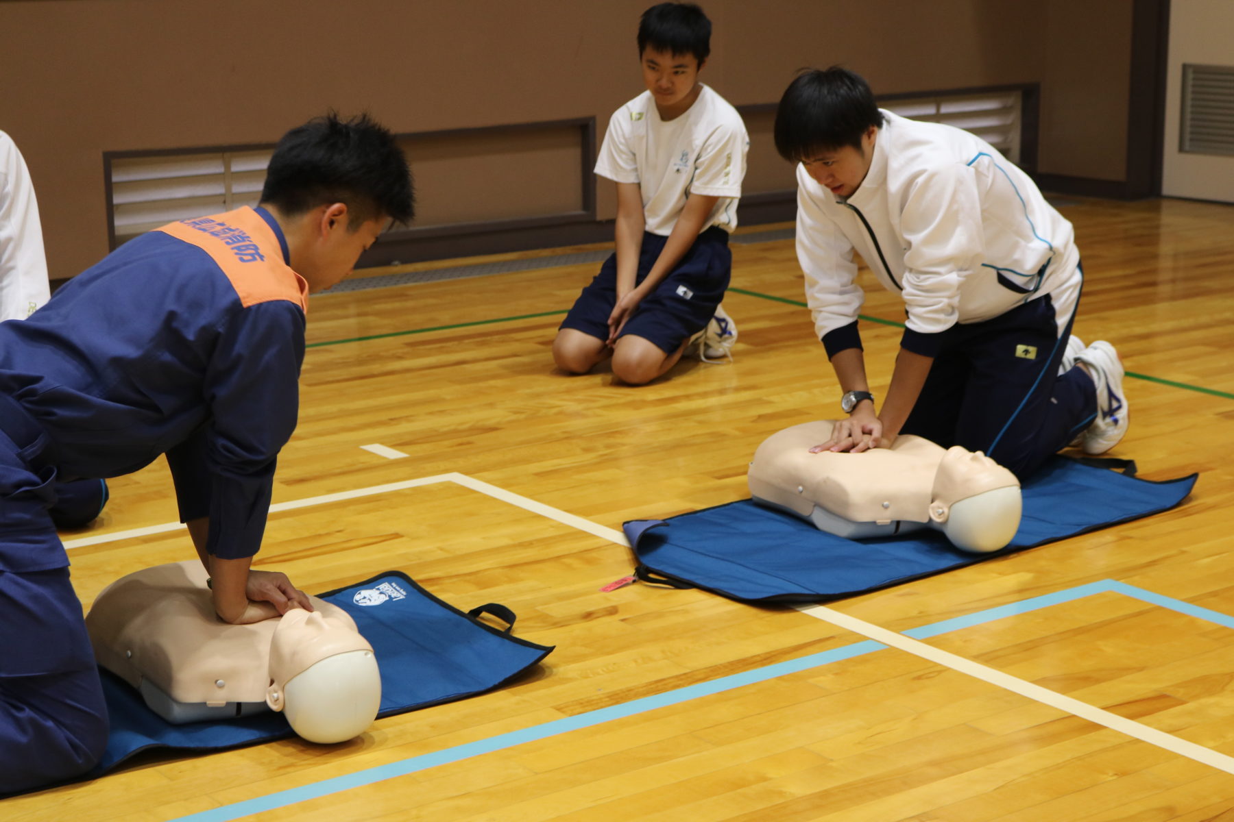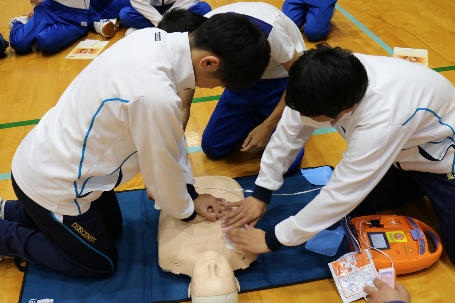 10月24日(高1C・D組)と25日(高1A・B組)の二日間に分けて、「救急救命講習会」を体育館で実施しました。