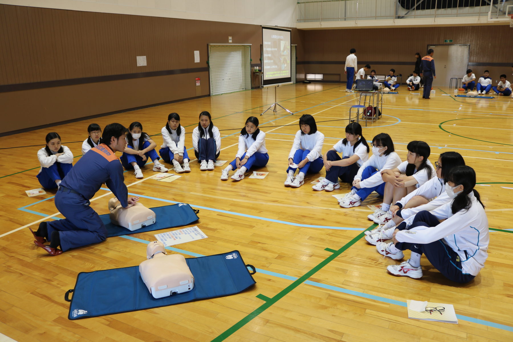 10月24日(高1C・D組)と25日(高1A・B組)の二日間に分けて、「救急救命講習会」を体育館で実施しました。