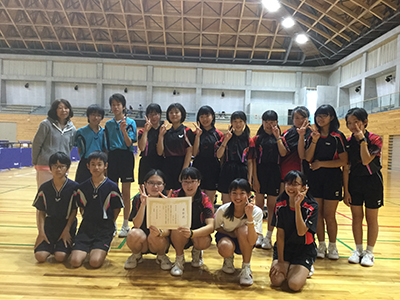 10月28日(日)上野公園総合体育館(シダーアリーナ)で行われた五條内吉野新人大会に卓球部が参加しました。中学1年、2年の部員、それぞれ普段の練習の成果を発揮して頑張ってくれました。なかでも中学2年の女子が団体戦で準優勝、また個人戦で2人がベスト8入りと活躍してくれました。また今回の結果を励みに練習を頑張っていきます。