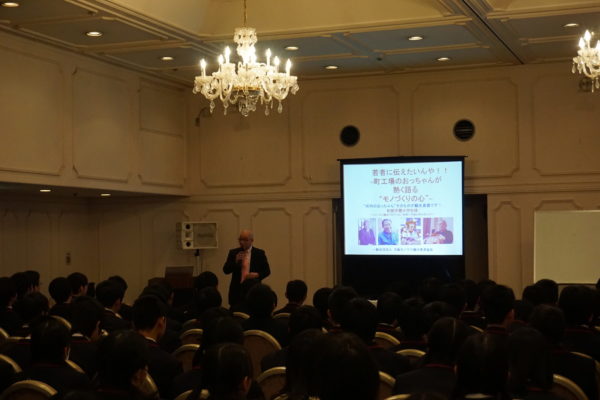 大阪モノづくり観光推進協会理事 足立克己様 からは、東大阪のモノづくりの原点や、その心意気に関してお話をしていただきました。