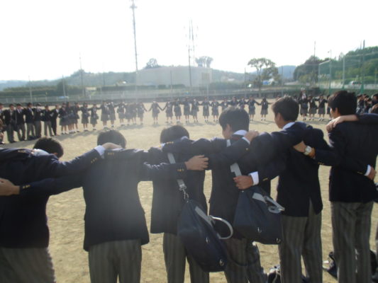 50期生と言えば、円陣!校外学習への気合を込めて…