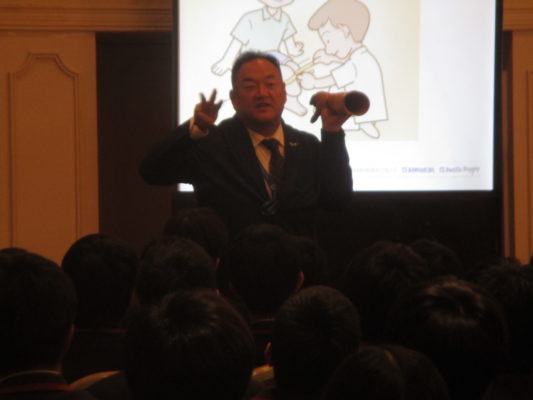 足立様の講演です。生徒の心を掴む軽やかな語り口。