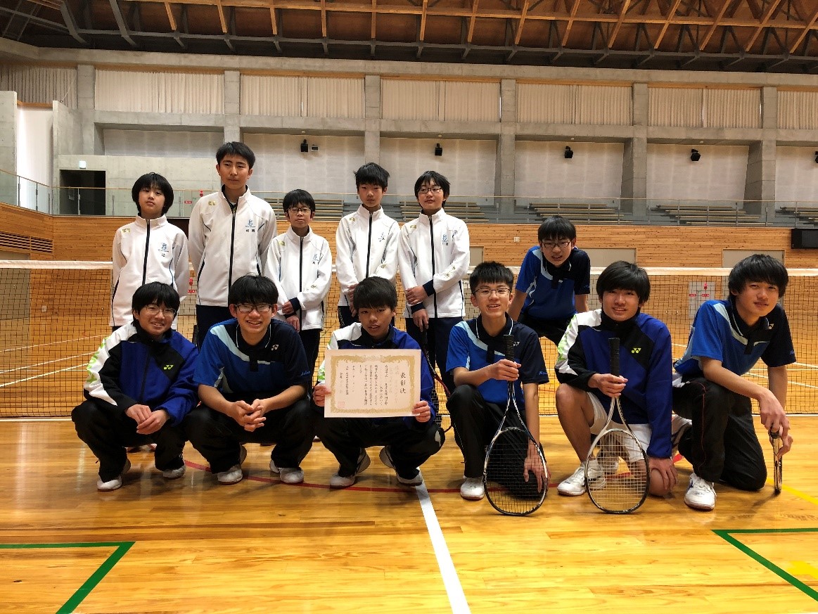 中学男子・団体の部で優勝、中学男子・個人の部で小林・阪本ペアが優勝、平田・伏尾ペアが準優勝、中尾・河端ペアが3位入賞しました。