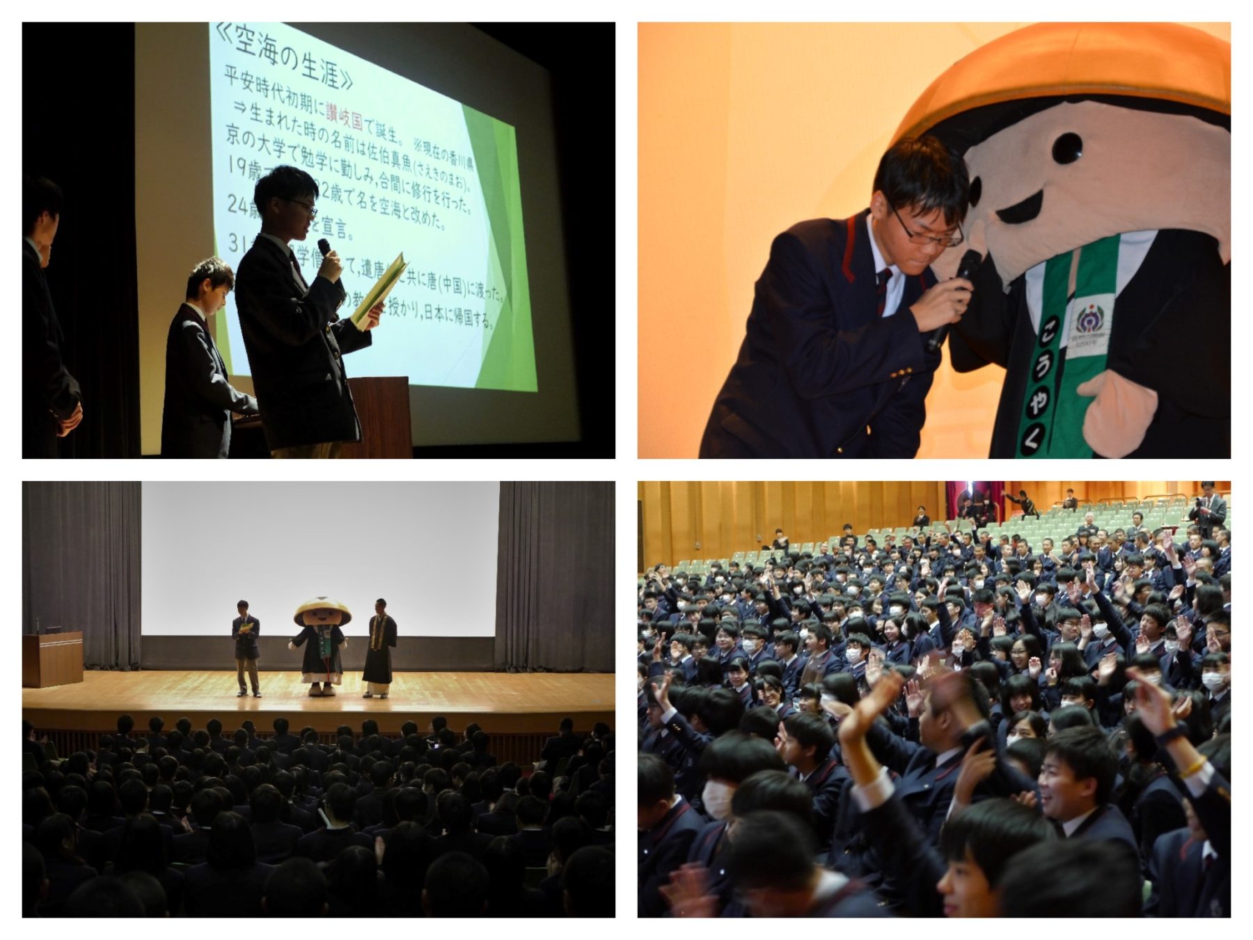 途中、総本山金剛峯寺のマスコットキャラクターである「こうやくん」も登場し、生徒達も大いに盛り上がりました。8日(金)の当日がとても楽しみです。