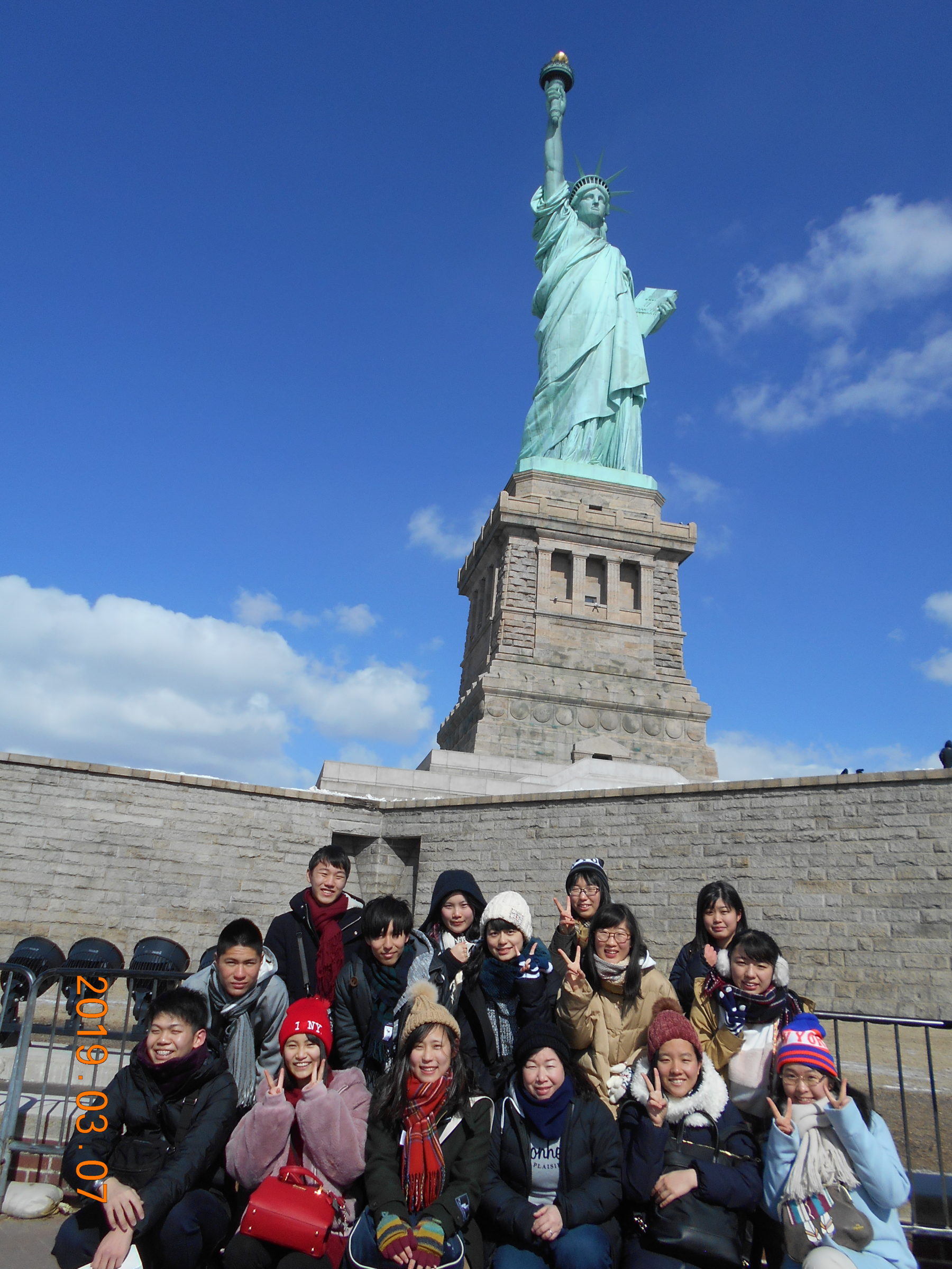 アメリカ短期留学プログラムがスタートしました。一行がまず向かったのは、世界最大の都市、ニューヨーク。前日までの大雪とは打って変わり、気温こそー7℃と低いものの、終始晴天に恵まれ絶好の観光日和でした。初日は自由の女神像や国連ビル内の見学をしたり、超人気ハンバーガー店「Shake Shack」で食事をしたりと、充実した一日を過ごしました。