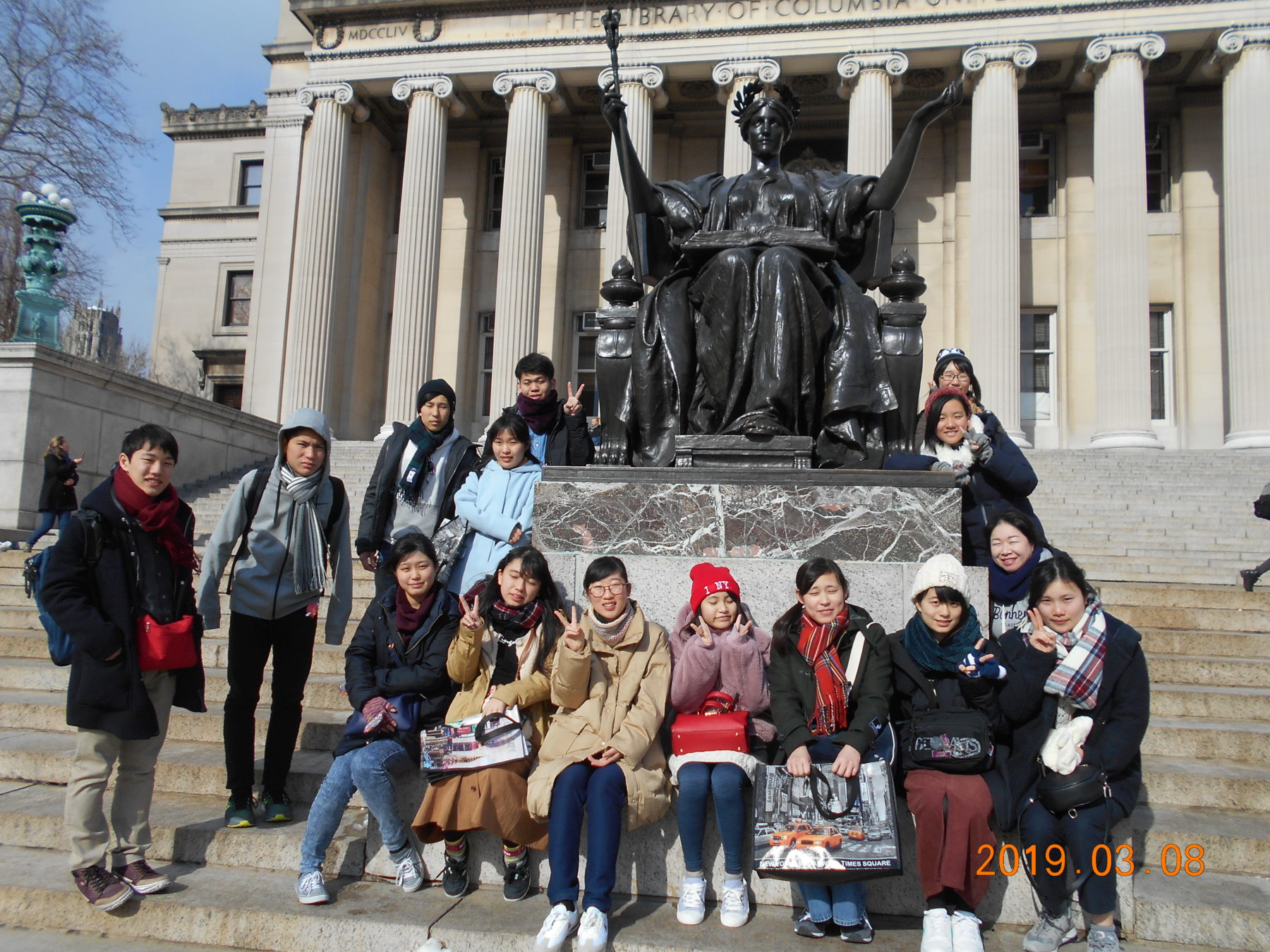 ニューヨーク観光の2日目は、ウォーキングツアーに出掛けました。一同、セント・パトリック大聖堂の荘厳なたたずまいに息を呑み、エンパイア・ステイト・ビルディングの展望台では、ニューヨークの景色を満喫。そしてアメリカで5番目に古いコロンビア大学では、大学の象徴とも言える旧図書館を見学しました。アメリカには近代的な建物がたくさんありますが、古い建物も取り壊さず、形を変えて活用します。1895年開館のこの図書館も、各種イベントを行うホールとして現在でも使用されています。