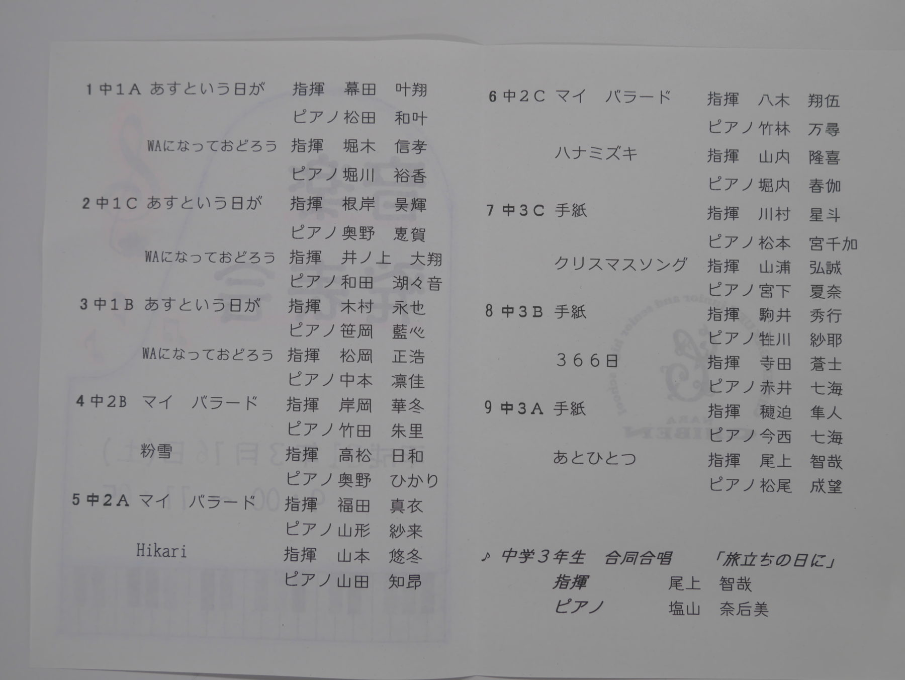 最後に、中学3年生全員で、「旅立ちの日に」を歌いました。