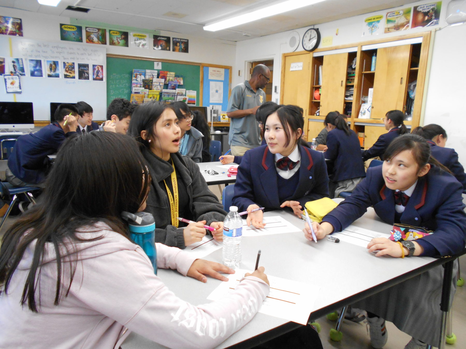 私たちは現在、コロラド州デンバーにあるトマス・ジェファーソン高校に来ています。デンバーはアメリカ合衆国のちょうど中程に位置する、南北にロッキー山脈がそびえ立つ美しい街です。この学校の学生たちはとてもフレンドリーで、第二言語として日本語を学んでいる学生もたくさんいます。智辯学園の生徒も毎日、日本語の授業に参加し、現地の学生たちと交流しています。