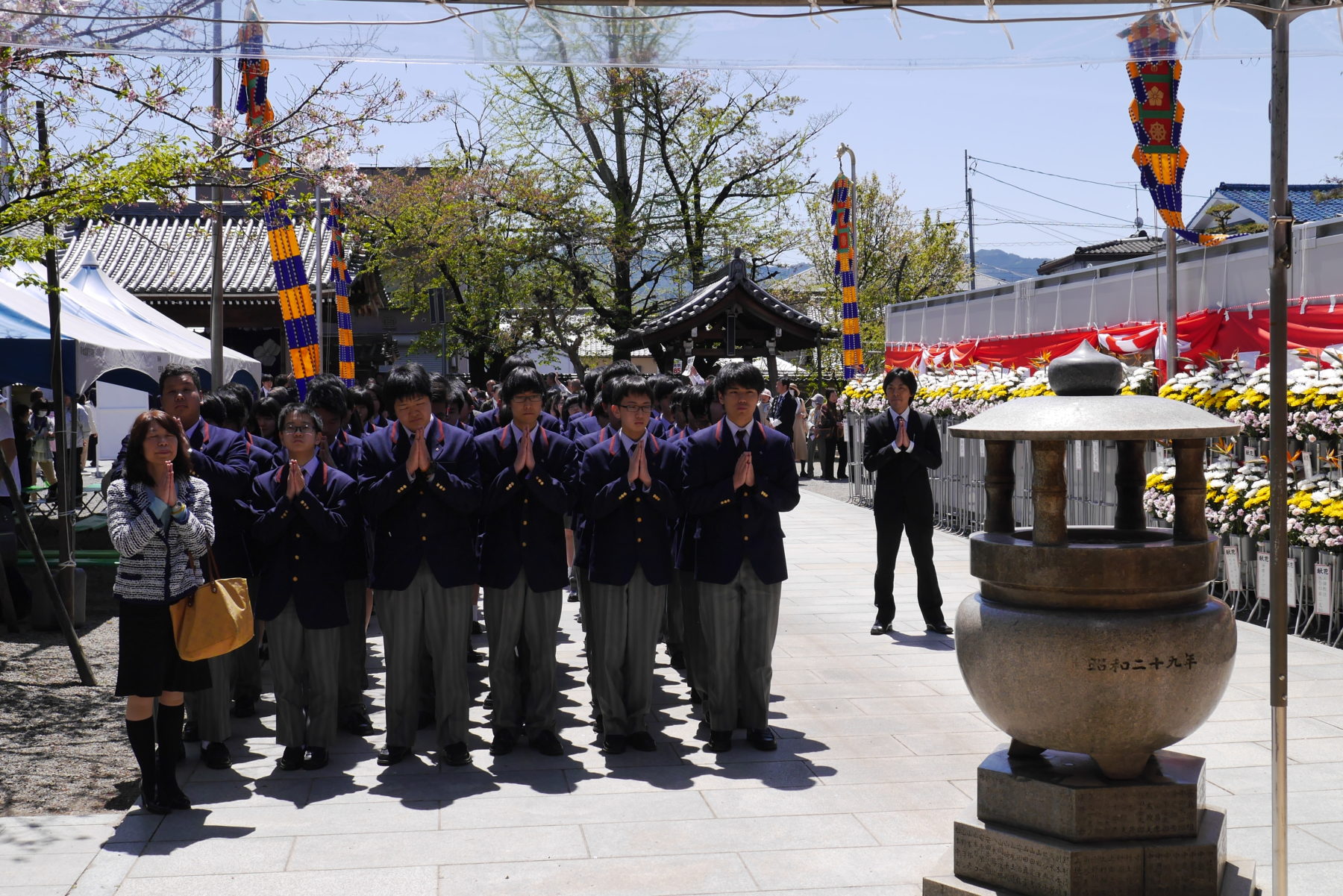 宗祖さまへの感謝の思いを胸に、合掌する生徒たちです。
