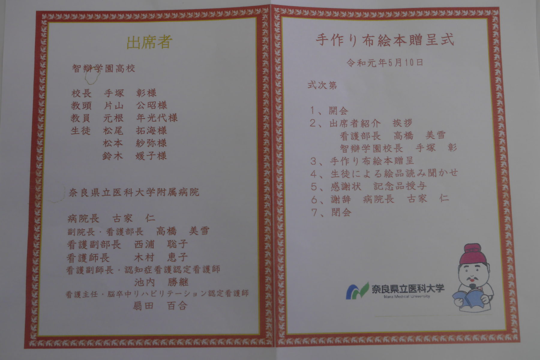 今年は奈良県立医科大学付属病院へ贈ることとなり、5月10日の午後4時から「贈呈式」。