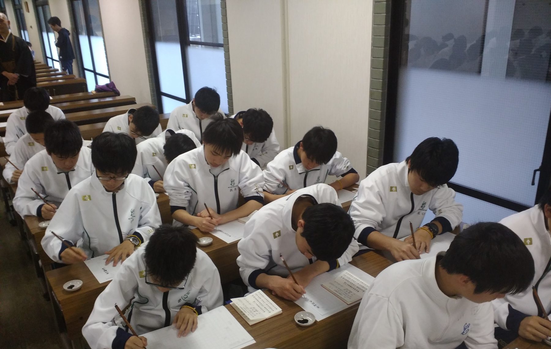また、写経の時間には、丁寧に仕上げた般若心経の写経の最後に「心願」を書き、お供えしました。「志望校合格」や「全国制覇」、「家内安全」、「世界平和」という願いもありました。その後、願いが成就するよう本堂で百巻心経をお唱えしました。生徒たちは心を一つにし、心経をお唱えし、その大きな声は本堂に響き渡りました。「感謝の心」を大切に、仲間と協力し合って過ごすことができた2泊3日の研修でした。