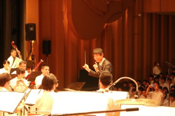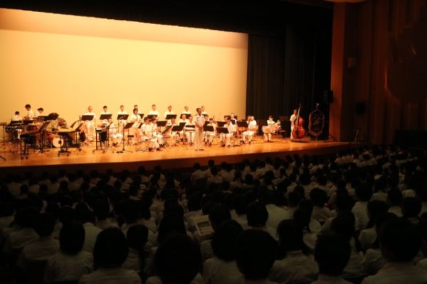 6月6日(木)13時から、海上自衛隊舞鶴音楽隊の皆様をお招きし、学園の講堂で音楽演奏会が催されました。