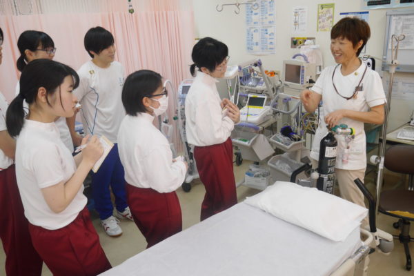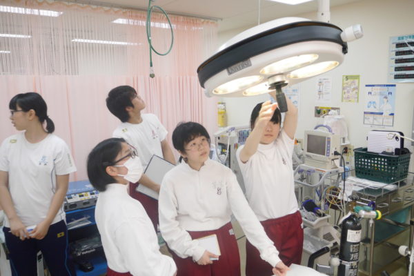 佐藤理事長先生に「紀和病院」の理念などをお話し頂いた後、生徒たちは看護部長である池田さんの案内で、救急治療室・手術室を見学させて頂きました。