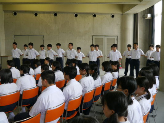 片山教頭先生からは励ましのお言葉があり、生徒会長や団長からの意気込みも語られました。全校生徒の先頭に立ち、伝統ある智辯学園らしい応援を今年も展開していってくれるものと期待しています。