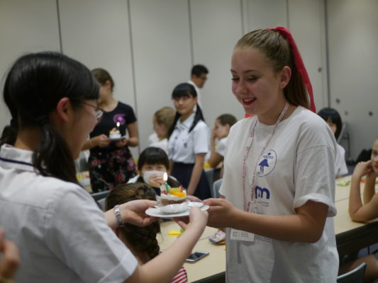 公演後、生徒会・コーラス部・アメリカ短期留学予定生徒(高1)との交歓会。