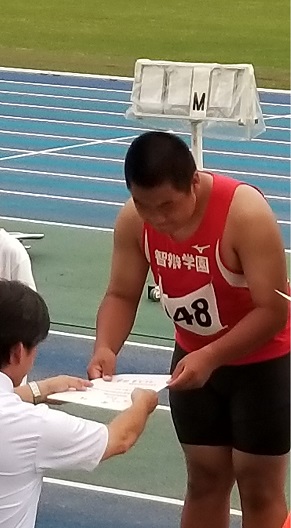 3年 今西 健佑くんが砲丸投(5.000㎏)で第2位になり、8月 11日(日)に滋賀県で開催される近畿総合体育大会と 21日(水)から大阪府で開催される第 46 回全日本中学校陸上競技選手権大会への出場が決まりました。