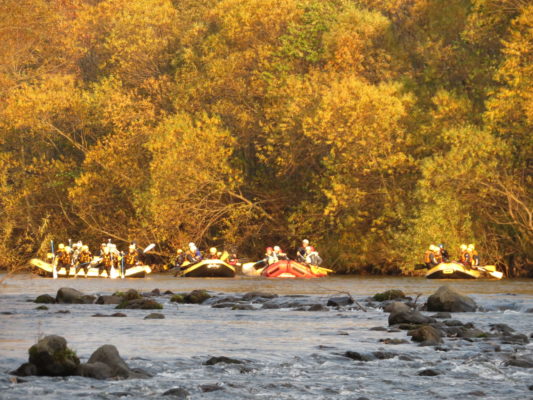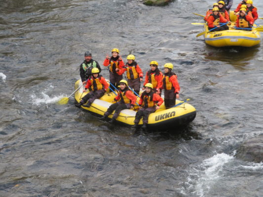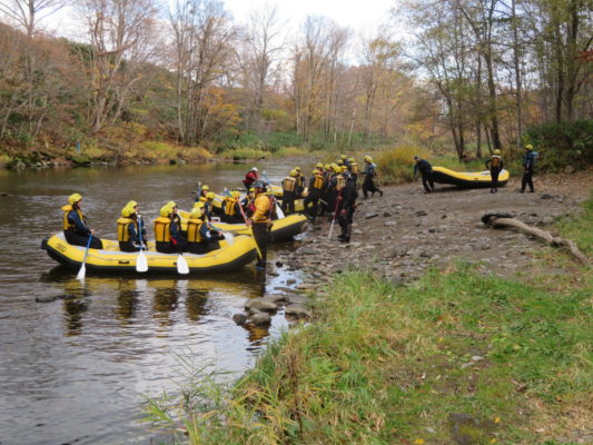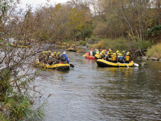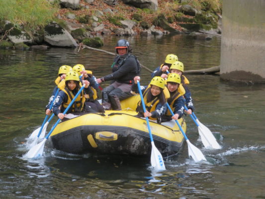 北海道修学旅行2日目の行程が終わりました。天候にも恵まれる中、洞爺湖畔の熊牧場で熊にりんごをあげたり、ロープウェイで有珠山にのぼって景色を楽しみました。お昼ご飯はみんなで海鮮鍋をいただき、午後はラフティング体験を行いました。北海道は冬の足音が近づく肌寒い気温でしたが、夕焼けの中、皆で盛り上がり充実した活動をすることができました。