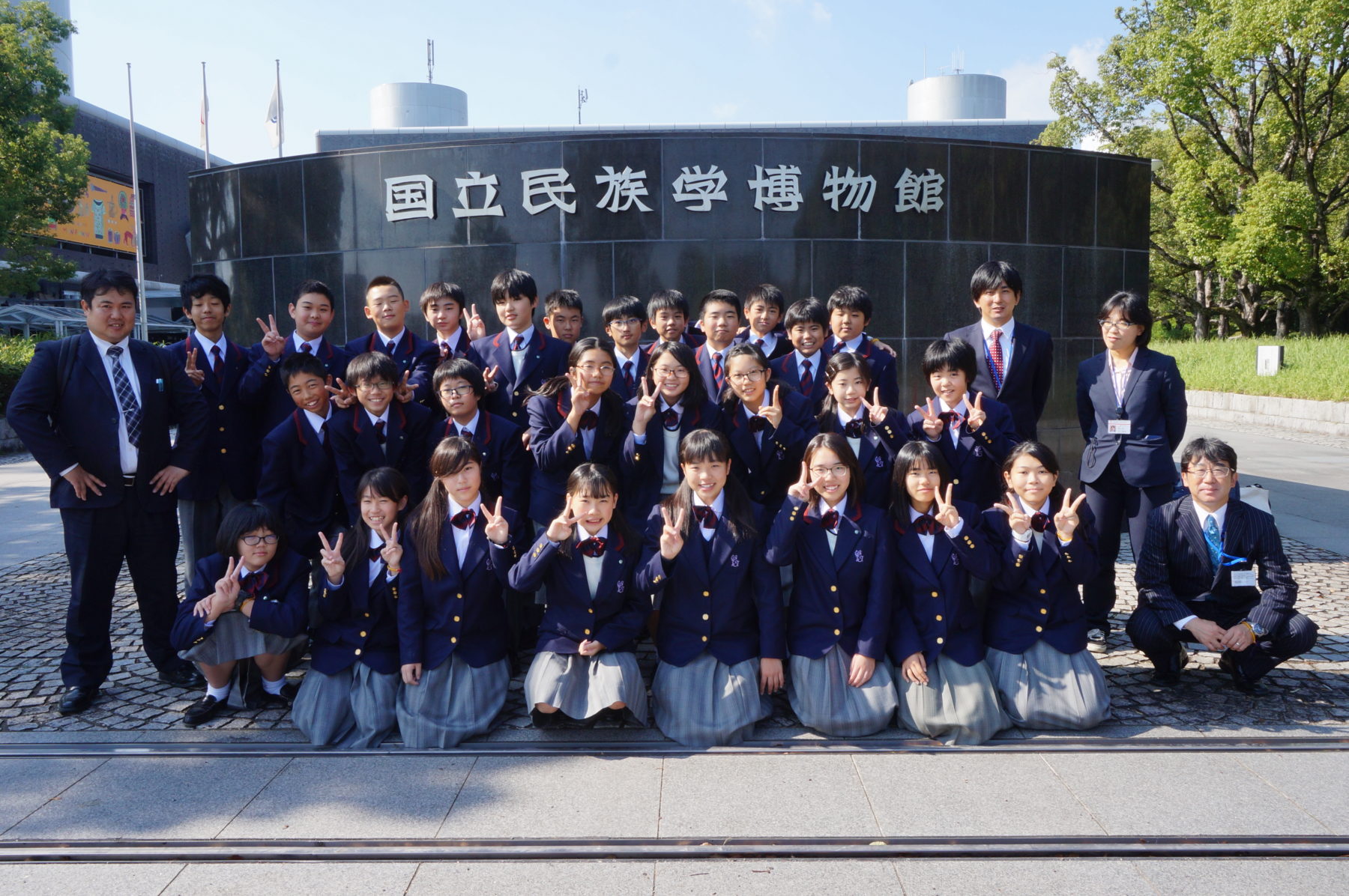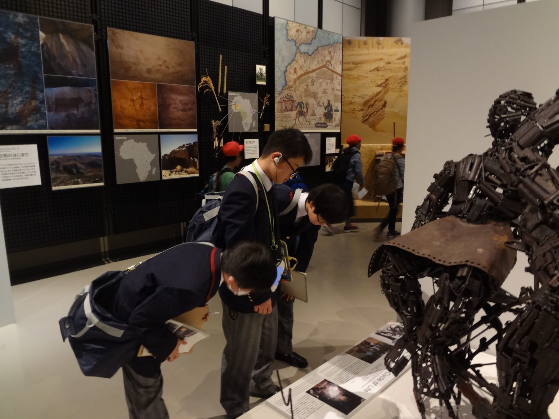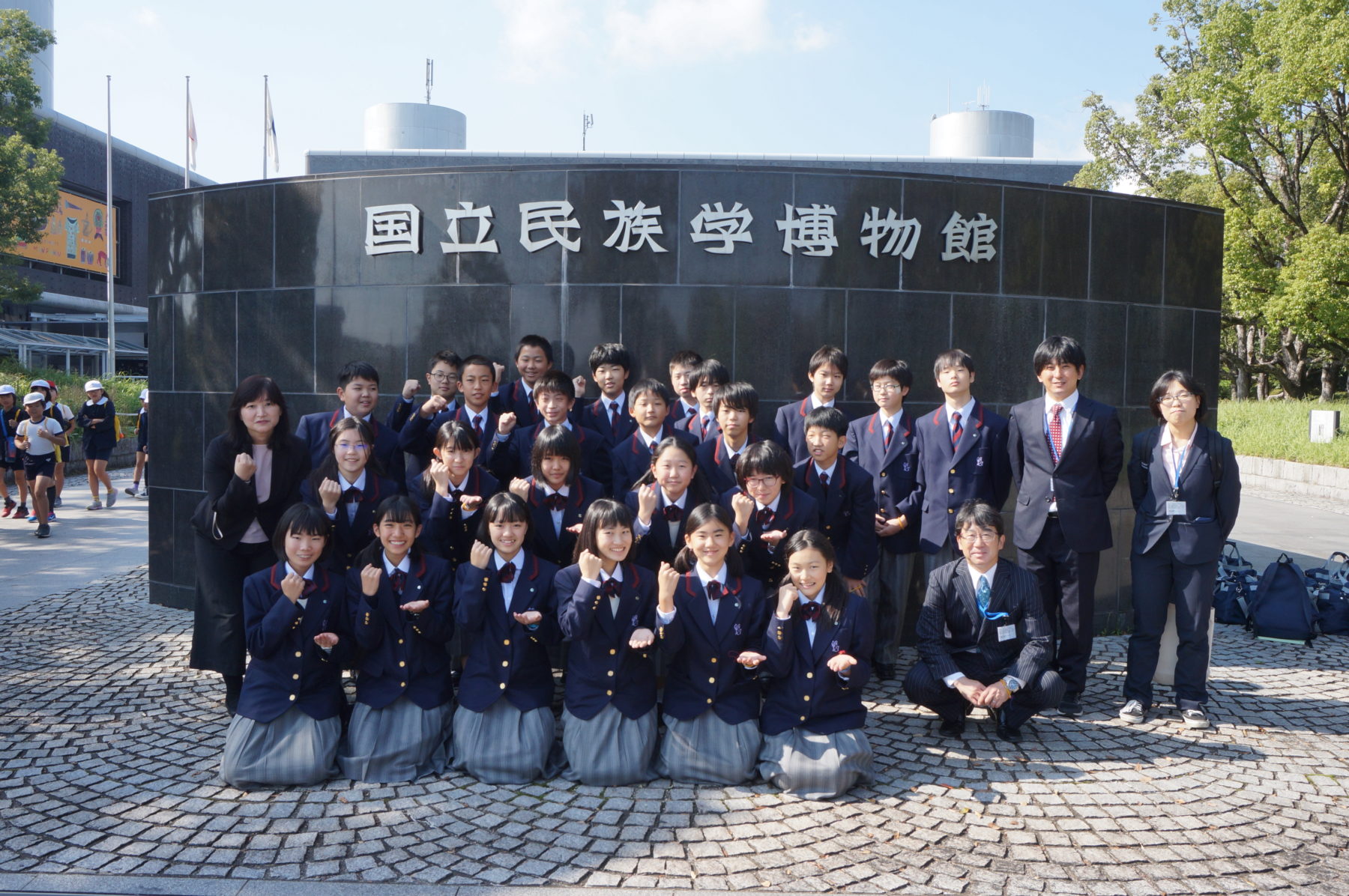 中学1年生は、万博公園内にある国立民族学博物館(通称:みんぱく)と大阪市立科学館へ行きました。午前中は民族学博物館で、班に分かれて常設展を見学し、世界の様々な国の文化に触れ、共通点や相違点など地域別にワークシートにまとめていきました。生徒達は異国文化の展示品や説明を興味深く見ていました。