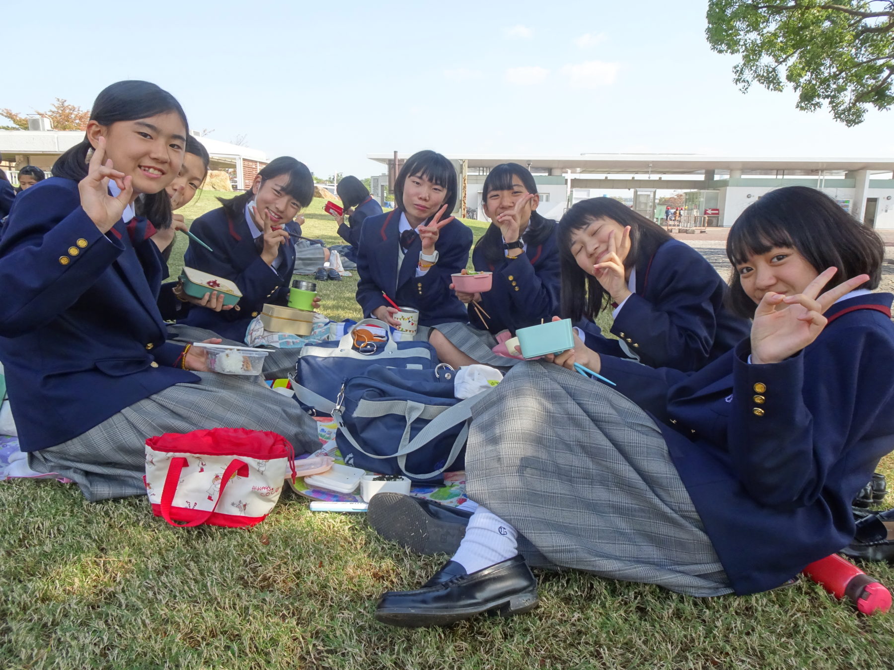 民族学博物館の見学の後は、万博公園内の芝生の上にレジャーシートを敷き、みんなでお昼ご飯を食べました。秋晴れの中、外で食べるお弁当はいつも以上においしかったです。