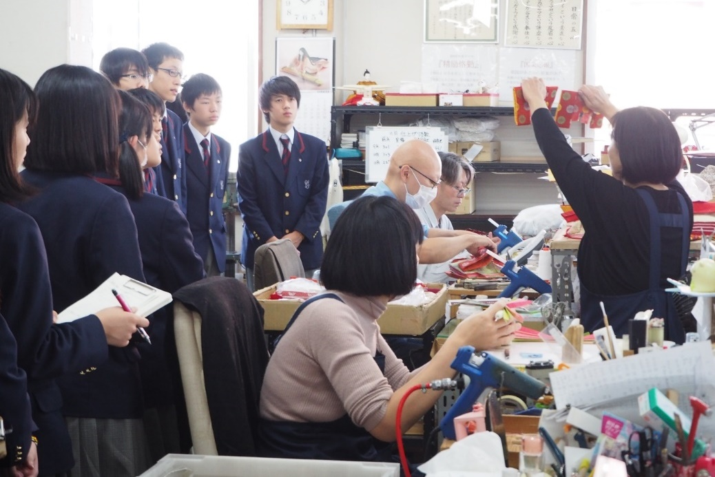 講演後は、それぞれのグループごとに6つの企業を見学しました。真剣にモノづくりに打ち込む職人の姿を見学させていただき、その製品作りへの情熱に生徒たちは感銘を受けていたようです。