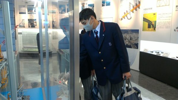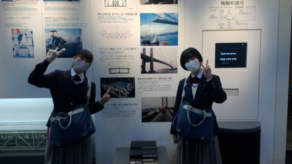 橋の科学館は、本州四国連絡橋のうちでも世界一を誇る明石海峡大橋を主体に本州四国連絡橋の建設に使われた、世界最高水準の架橋技術を一堂に集め、人々の知的向上心を高める学習の場として、また架橋技術の広報の場として設置されたサイエンスミュージアムです。橋の建設のために結集された技術力の高さに圧倒されると共に、架橋にかける人々の想いに触れ、生徒たちは感慨深げに展示物を見学しておりました。