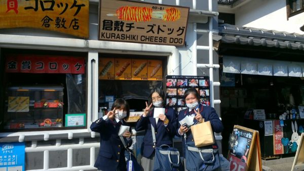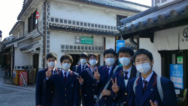 倉敷美観地区では、班ごとの自由散策を行いました。お天気にも恵まれ、歴史ロマンとアートが薫る美しい白壁の町並みを満喫することが出来ました。また一つ良い思い出ができました。