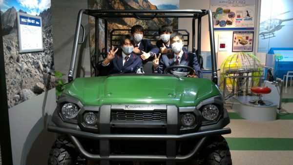 併設のカワサキワールドは、神戸の地で生まれ、120年以上の歴史を持つ川崎重工グループの企業ミュージアムで、船舶、鉄道車両、車両、航空機、モーターサイクルなどの展示がありました。展示物に実際に触れることもでき、生徒たちは童心に返り、楽しんでいました。
