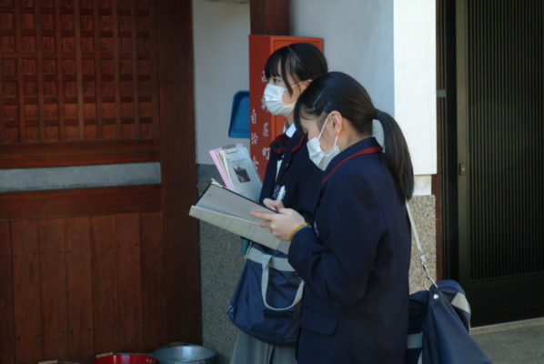 午後は元興寺の旧境内を中心としたエリア「ならまち」で、班ごとに町を散策しました。「ならまち」を歩くと、江戸から近代の商家や民家が並び、古都らしい町並みを楽しむことができました。