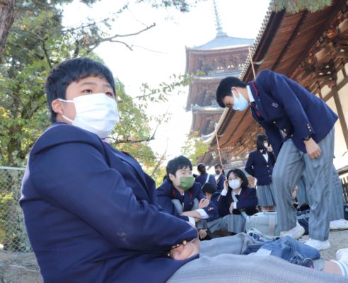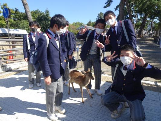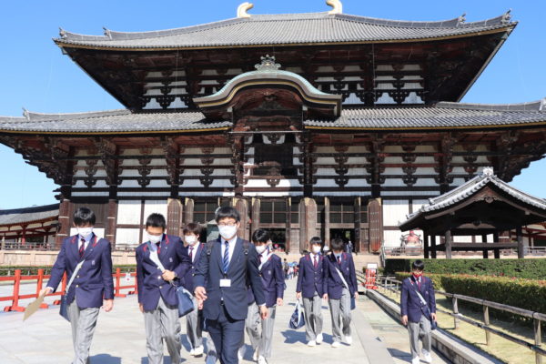 10月27日(火)に中学2年生は奈良の興福寺・東大寺・ならまちを訪れました。地元奈良の歴史や文化に触れ、歴史的な見方・考え方に基づいて、知識を深め、課題を探求し、解決力を身につける目的で実施しました。